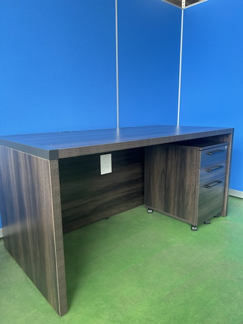 イノウエ STO ブラウン 木製平机+3段ワゴンセット