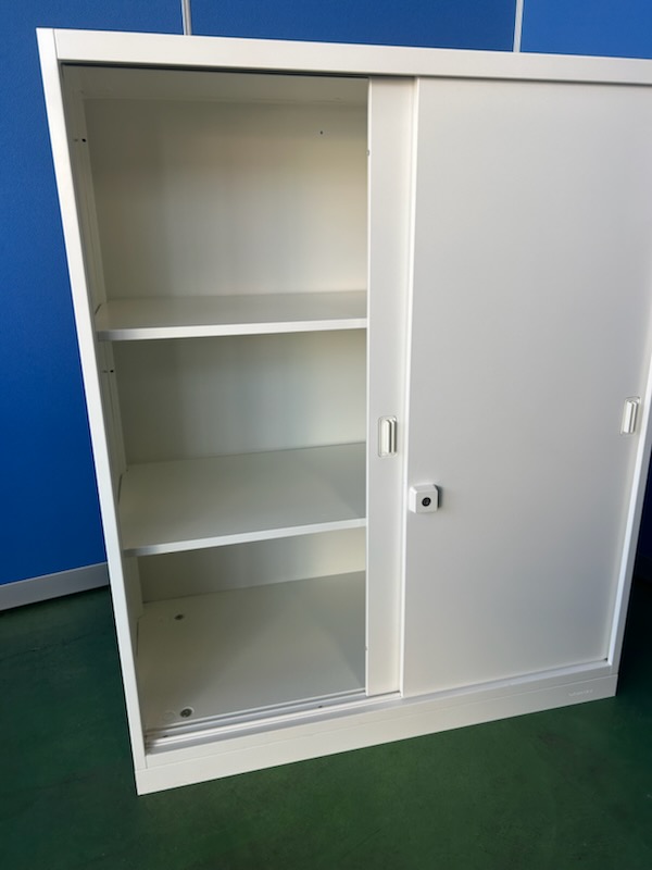 オカムラ レクトライン 3段 ネオホワイト 引き戸書庫 ベース付