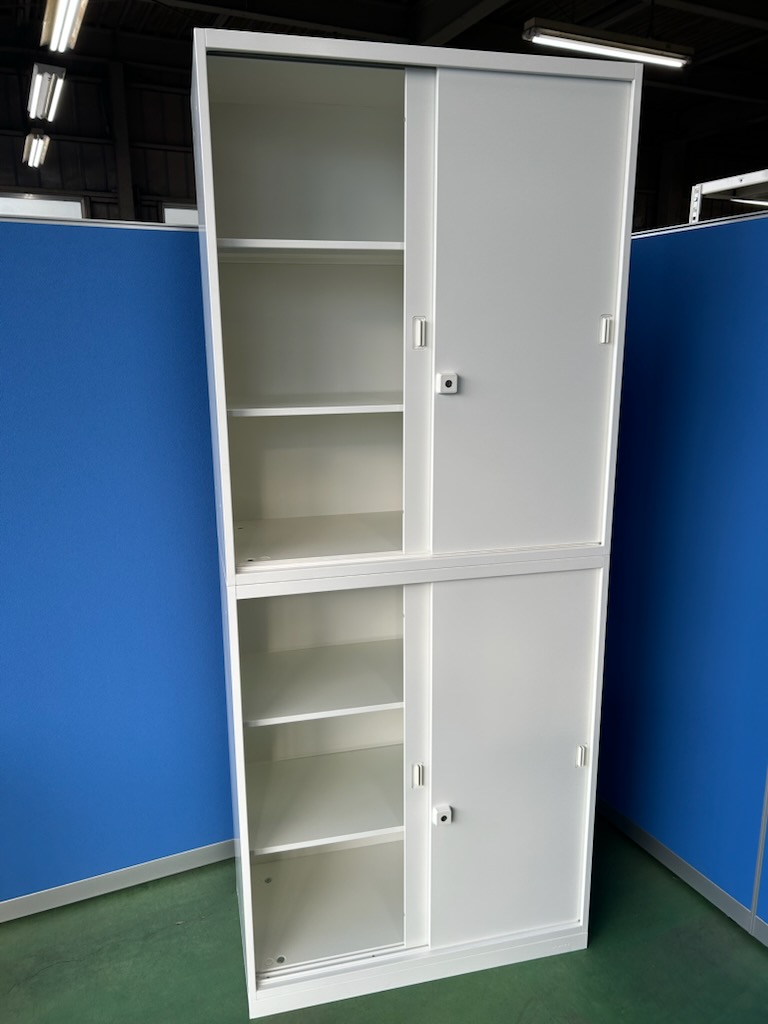 オカムラ レクトライン ネオホワイト W900×D450×H2150 引き戸書庫 上下セット[536]